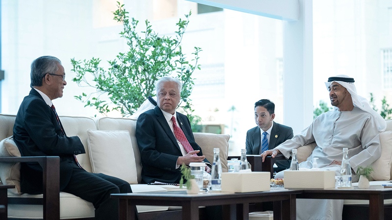 استقبل صاحب السمو الشيخ محمد بن زايد آل نهيان، رئيس الدولة، أمس، رئيس وزراء مملكة ماليزيا، إسماعيل صبري يعقوب، الذي يقوم بزيارة عمل إلى الدولة. ورحب سموه، خلال اللقاء الذي جرى في قصر الشاطئ، بضيف البلاد، متطلعاً إلى أن تسهم زيارته في دفع علاقات البلدين إلى الأمام في مختلف المجالات. وحمّله تحياته إلى صاحب الجلالة السلطان عبدالله رعاية الدين المصطفى بالله شاه، ملك ماليزيا، متمنياً لجلالته وماليزيا وشعبها مواصلة التقدم والازدهار.