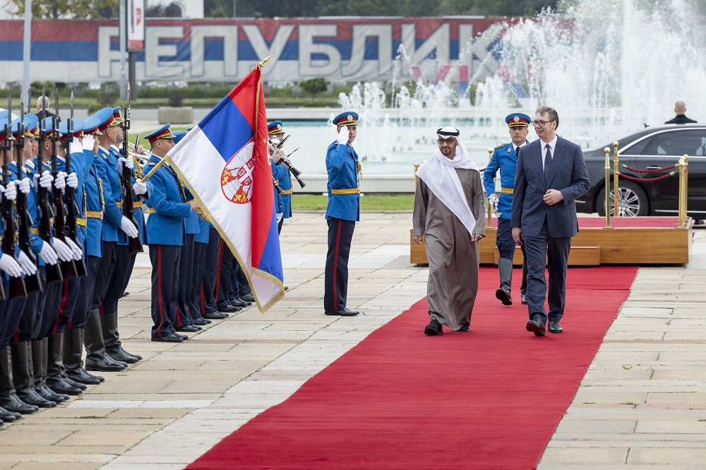 وكان صاحب السمو رئيس الدولة قد وصل في وقت سابق اليوم إلى مطار بلغراد حيث وكان في استقبال سموه فخامة الرئيس الصربي.