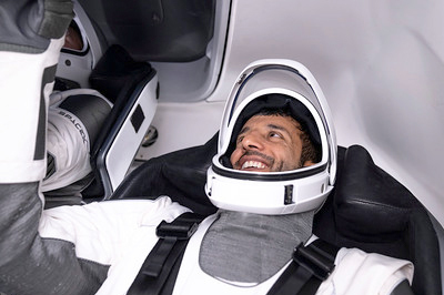 تدرب رائد الفضاء الإماراتي سلطان النيادي داخل نموذج لمركبة "دراجون" في مقر شركة سبيس إكس في هاوثورن، كاليفورنيا، الولايات المتحدة الأمريكية، ضمن التحضيرات للمهمة الثانية لبرنامج الإمارات لرواد الفضاء إلى محطة الفضاء الدولية وأول مهمة طويلة الأمد لرواد الفضاء العرب .