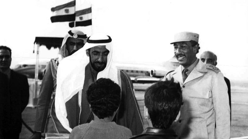 بعد رحيل الرئيس المصري جمال عبدالناصر، ساندت مصر بقيادة رئيسها آنذاك محمد أنور السادات إعلان قيام دولة الاتحاد عام 1971، وزار الرئيس المصري دولة الإمارات، ليرد بعدها المغفور له الشيخ زايد بن سلطان آل نهيان، طيب الله ثراه، الزيارة إلى القاهرة، مقدماً وشاح آل نهيان للرئيس السادات.