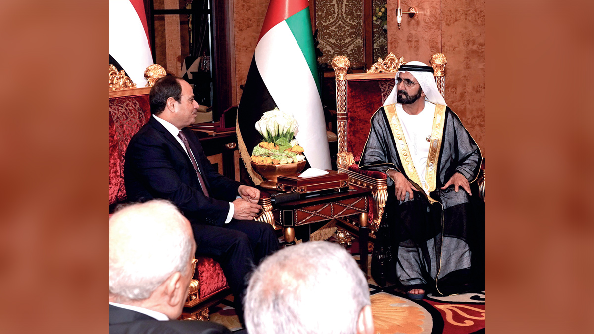 ويسير صاحب السمو الشيخ محمد بن زايد آل نهيان، رئيس الدولة، على نهج المغفور له الشيخ زايد بن سلطان آل نهيان، ووصيته التي قال فيها: «نهضة مصر نهضة للعرب كلهم، وأوصيت أبنائي بأن يكونوا دائماً إلى جانب مصر، فهذا هو الطريق لتحقيق العزة للعرب كلهم.. إن مصر بالنسبة للعرب هي القلب، وإذا توقف القلب فلن تكتب للعرب الحياة»، كما يواصل الرئيس المصري عبدالفتاح السيسي النهج المصري الثابت والراسخ في تعزيز العلاقات المتميزة والوطيدة مع دولة الإمارات على المستويات كافة، وفي مختلف المجالات.