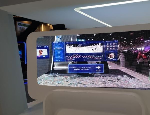 شاشة تعرض البيئة الافتراضية لمنظومة مترو دبي عرضتها طرق دبي خلال معرض جيتكس - تصوير الإمارات اليوم
