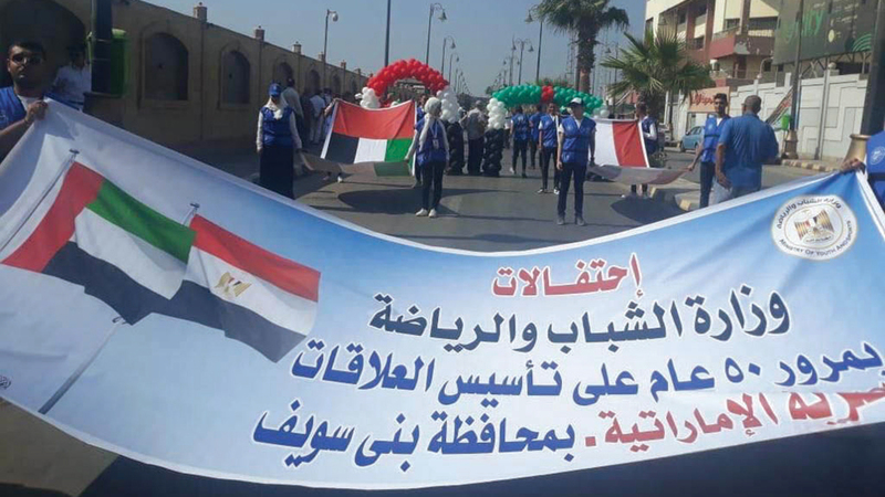 في ظلال الأعلام المصرية والإماراتية، التي رفرفت في أيادي أجيال المستقبل في مدن عدة من العاصمة القاهرة وحتى بورسعيد، انطلقت في مصر فعاليات مختلفة، استعداداً للاحتفال بمرور 50 عاماً على تأسيس العلاقات الإماراتية - المصرية، تحت شعار «مصر والإمارات قلب واحد»، والتي تنظمها حكومة دولة الإمارات، بالتعاون مع الحكومة المصرية، خلال الفترة من 26 إلى 28 أكتوبر الجاري.