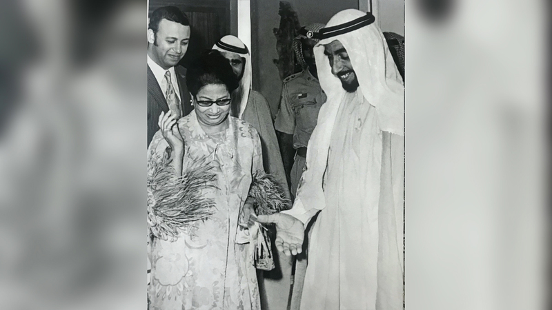• 28 نوفمبر عام 1971، نظم الحفل الأول لأم كلثوم بحضور المغفور له الشيخ زايد.