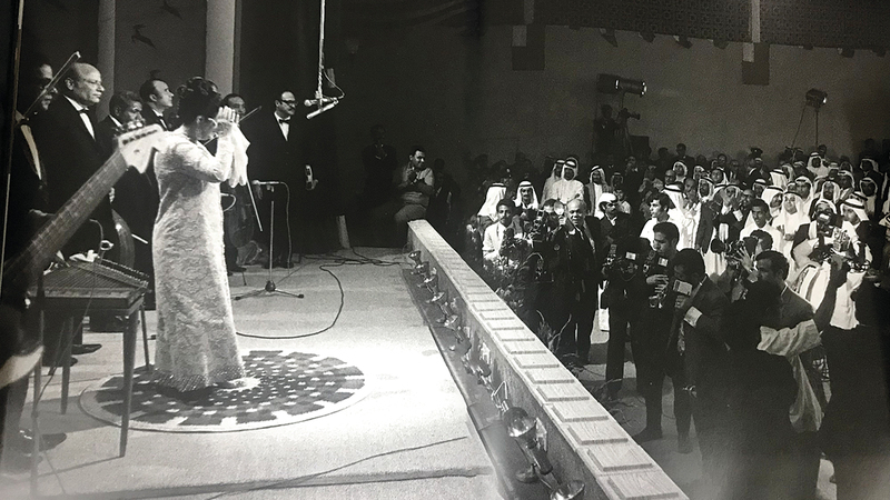 في مساء 28 نوفمبر 1971، أقيم الحفل الأول لأم كلثوم بحضور المغفور له الشيخ زايد بن سلطان آل نهيان، طيب الله ثراه، ولفيف من كبار الشخصيات، إلى جانب جمهور غفير حتى اضطر حاضرون للجلوس على الأرض أو متابعة الحفل وقوفاً، فقد كانت الطاقة الاستيعابية للمسرح 3000 مقعد، بينما احتشد بداخله ما يقرب من 4000 شخص.