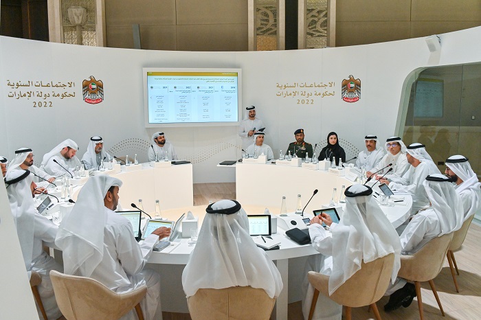 جاء ذلك خلال جلسة حكومية ضمن أعمال الاجتماعات السنوية لحكومة دولة الإمارات 2022 هدفت إلى تعزيز الصناعات الوطنية لإحداث نقلة نوعية في التنمية الصناعية وتعزيز القيمة الوطنية المضافة.