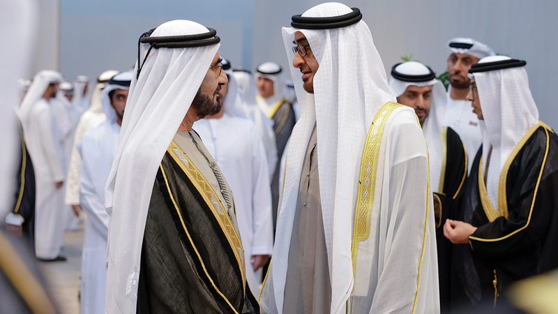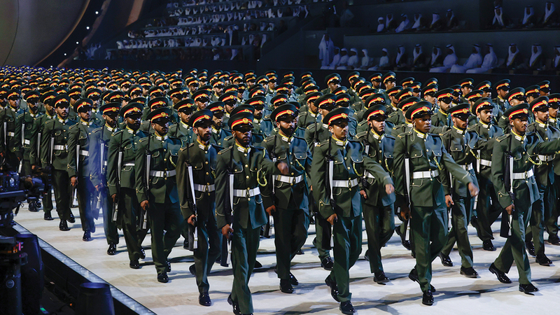 شهد صاحب السمو الشيخ محمد بن زايد آل نهيان، رئيس الدولة، وصاحب السمو الشيخ محمد بن راشد آل مكتوم، نائب رئيس الدولة رئيس مجلس الوزراء حاكم دبي، وأصحاب السمو الشيوخ أعضاء المجلس الأعلى للاتحاد حكام الإمارات، وسمو أولياء العهود ونواب الحكام والشيوخ.. الاحتفال الرسمي باليوم الوطني لدولة الإمارات العربية المتحدة «عيد الاتحاد الـ51» والذي أقيم، أمس، في مركز أبوظبي الوطني للمعارض «أدنيك».