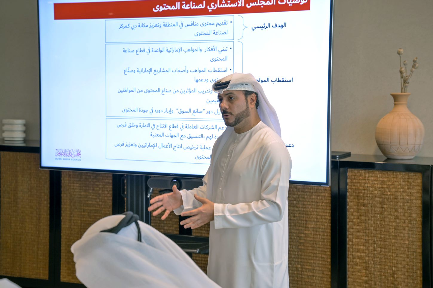 كما قدّم محمود الرشيد، نائب رئيس المجلس الاستشاري لصناعة المحتوى شرحاً حول ما أسفرت عنه عملية التقييم الأولية للمحتوى المُقدم عبر مختلف قنوات إعلام دبي، والتي أُجريت فور إعلان تشكيل المجلس، من أجل وضع تصورات للتطوير قائمة على استيعاب دقيق لمتطلبات الريادة الإعلامية المنشودة خلال المرحلة المقبلة.