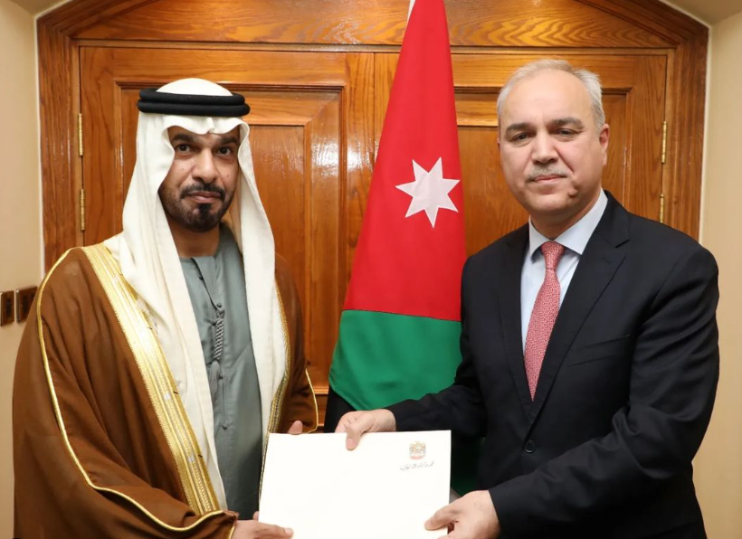 قدم الشيخ خليفة بن محمد بن خالد آل نهيان، الأربعاء نسخة من أوراق اعتماده سفيراً فوق العادة مفوضاً لدولة الإمارات العربية المتحدة لدى المملكة الأردنية الهاشمية، إلى عطوفة حازم الخطيب أمين عام وزارة الخارجية وشؤون المغتربين بالوكالة.