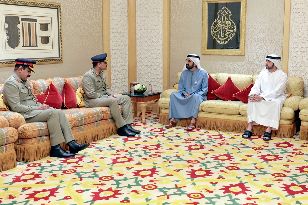 محمد بن راشد يستقبل قائد الجيش الباكستاني في قصر زعبيل
