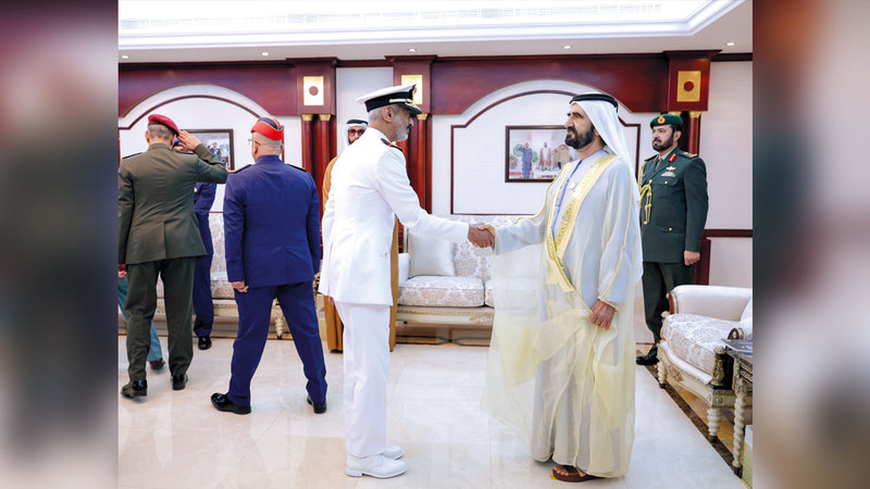 استقبل صاحب السموّ الشيخ محمد بن راشد آل مكتوم، نائب رئيس الدولة رئيس مجلس الوزراء حاكم دبي، أمس، في مقر كلية زايد الثاني العسكرية في مدينة العين، عدداً من القيادات العسكرية والشرطية في الدولة وفي عدد من الدول الشقيقة، المدعوين إلى حفل تخرج الدفعة الـ47 من مرشحي الضباط في كلية زايد الثاني العسكرية، إلى جانب عدد من الدبلوماسيين والملحقين العسكريين في سفارات الدول الشقيقة والصديقة لدى الدولة.