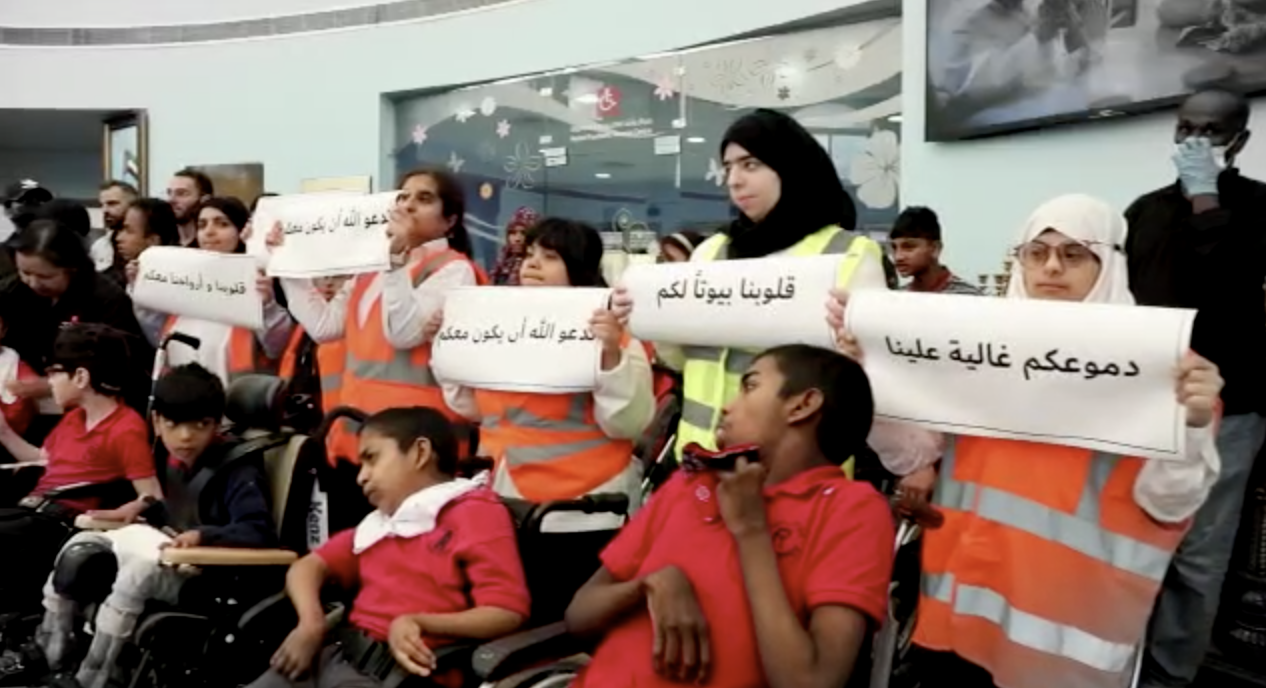 نظم طلبة مركز راشد لأصحاب الهمم، تجمعا داخل المركز شارك فيه مدير مركز دبي-هيئة الهلال الاحمر الاماراتي، محمد أحمد اليماحي وعدد من المتطوعين، دعماً للحملة الوطنية المجتمعية "جسور الخير" لتعزيز جهود دولة الإمارات في مساعدة العائلات والمتضررين من الكوارث الطبيعة التي أصابت الجمهورية العربية السورية والجمهورية التركية أخيراً.