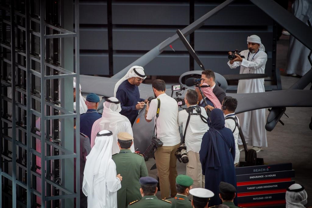 طائرة ريتش-إس المسيرة تزدان بتوقيع صاحب السمو الشيخ محمد بن زايد آل نهيان، رئيس الدولة، في جناح ايدج في آيدكس.. والتي تأتي ترجمة لرؤية سموه السديدة بتعزيز القدرات السيادية لوطننا الحبيب بسواعد أبنائه، لا سيما وأن صناعة الدفاع تعد رافداً مهماً من روافد التنمية الشاملة والمستدامة في دولة الإمارات.