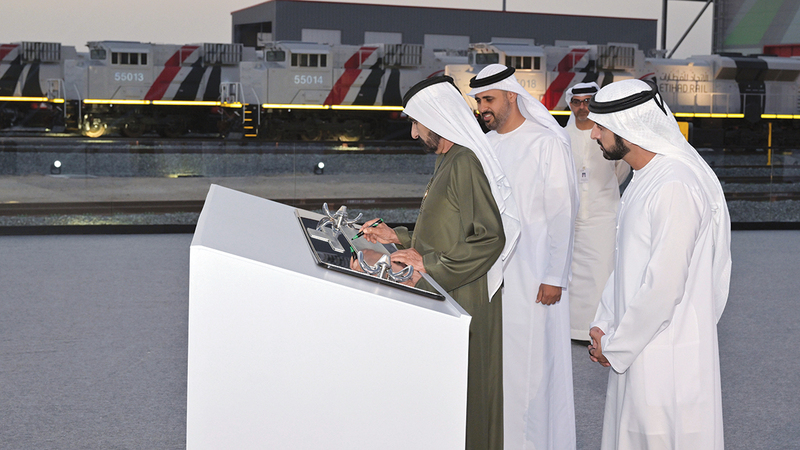 جاء ذلك خلال حفل تدشين سموه لشبكة السكك الحديدية الوطنية الإماراتية، في المركز الرئيس للتحكم والصيانة في منطقة الفاية بإمارة أبوظبي، حيث تعد الشبكة مشروعاً تنموياً طموحاً يربط الإمارات السبع بشبكة سكك حديدية واحدة تشكّل أحد أكبر مشاريع البنية التحتية في المنطقة، وقد تم إطلاق العمليات التشغيلية لقطار البضائع عبر جميع إمارات الدولة.