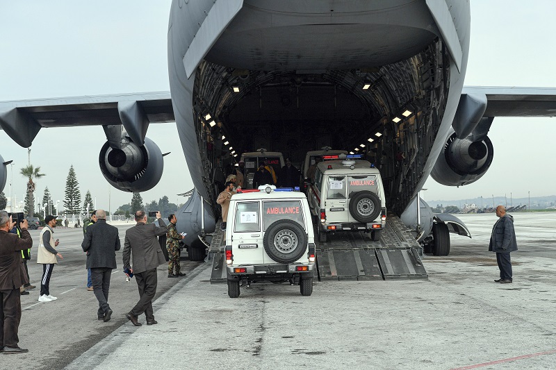 أهدت قيادة العمليات المشتركة ضمن عملية الفارس الشهم ٢ وبالتنسيق مع وزارة الصحة ووقاية المجتمع والهلال الاحمر الاماراتي الجمهورية السورية 10 سيارات مجهزة بأحدث الأجهزة التقنية الحديثة استمرارا لجهود الدولة في إغاثة الأشقاء في سوريا عقب الزلزال الذي تأثرت به.