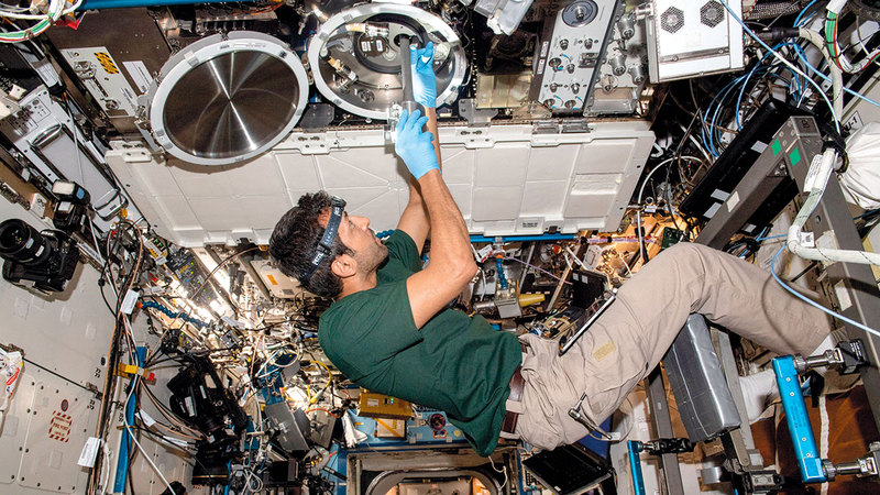 النيادي أجرى تجربة على حركة الأجسام في الفضاء، في ظل شبه انعدام للجاذبية. من المصدر