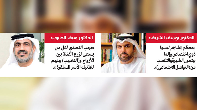 وأكد أن معظم هؤلاء ليسوا ذوي اختصاص، وإنما يبتغون الشهرة، والتكسب من مواقع ووسائل التواصل الاجتماعي، ولو كان على حساب هدم البيوت، وتحويل حياة الناس إلى جحيم من المشكلات، وهذا ما يوقع هؤلاء تحت طائلة المساءلة القانونية والعقاب، لأن فعلهم هذا من شأنه إثارة الفتنة، وزعزعة الاستقرار والأمن الاجتماعي.