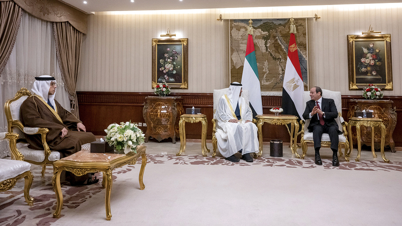 من جانبه رحب الرئيس عبدالفتاح السيسي بصاحب السمو الشيخ محمد بن زايد آل نهيان، في بلده الثاني، معرباً عن اعتزازه بعلاقات الأخوة التي تربط مصر والإمارات وقيادتيهما وشعبيهما.