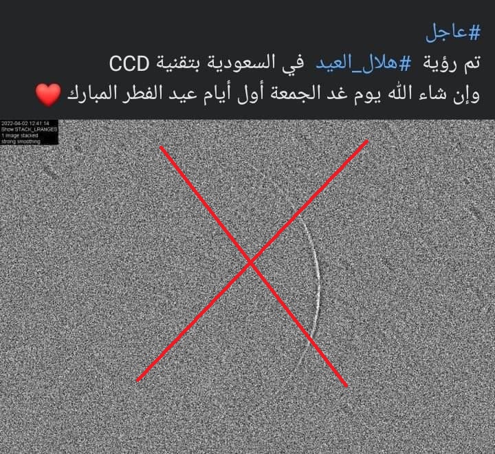 وأكد المركز أن هذه الصور غير صحيحة، فهي صور قديمة للهلال، والتاريخ مبين أعلى الصور أنه يوم 02 إبريل 2022م.