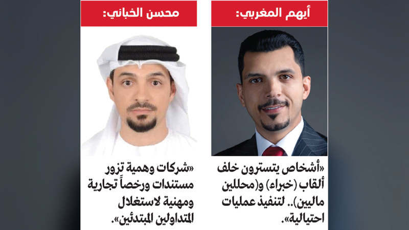 وتابع: «رصدت عدداً من الشكاوى من المتعاملين، تفيد بتعرضهم للنصب بسبب التعامل مع مثل هؤلاء الأشخاص عبر مواقع التواصل الاجتماعي، وشراء كتب لتعليم التداول بمحتوى غير مفيد ومستنسخ»، داعياً إلى التأكد من هوية الشخص الذي يتم التعامل معه عبر طلب صورة من بطاقة ممارسة المهنة، وصورة من الرخصة الرسمية للشركة من الجهات المعتمدة للتأكد من صحتها.