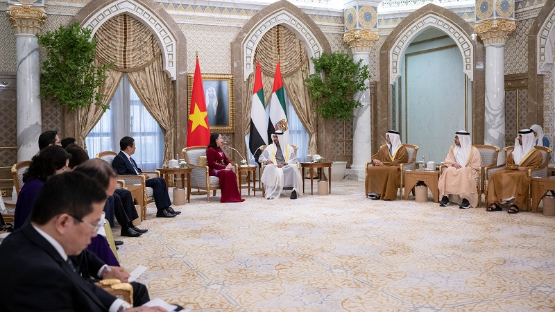 من جانبها أعربت نائبة رئيس فيتنام عن شكرها وتقديرها لحفاوة الاستقبال التي حظيت بها خلال زيارتها الدولة .. مؤكدة أن بلدها يولي اهتماماً خاصاً بتعزيز علاقاته مع دولة الإمارات في مختلف المجالات التي تدفع جهود التنمية في البلدين.