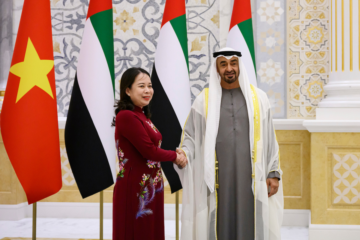 بحث صاحب السمو الشيخ محمد بن زايد آل نهيان رئيس الدولة، حفظه الله، وفوتي آنه شوان نائبة رئيس جمهورية فيتنام الاشتراكية.. علاقات الصداقة ومسارات التعاون بين البلدين والفرص الواعدة لتنميتها وتوسيع مجالاتها إلى آفاق أرحب بما يخدم مصالحهما المتبادلة.