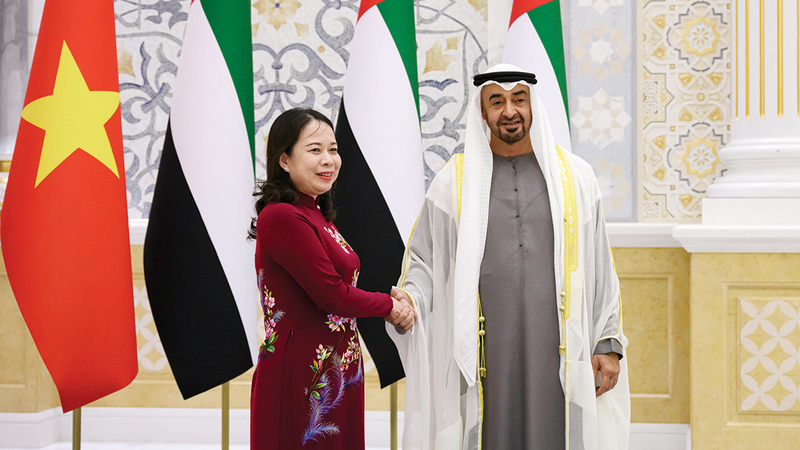 واستعرض سموه ونائبة الرئيس مختلف جوانب التعاون بين دولة الإمارات وفيتنام وإمكانات تنويعها وتنميتها، خصوصاً في المجالات الاستثمارية المشتركة والاقتصادية والتنموية والطاقة المتجددة والأمن الغذائي، وغيرها من الجوانب التي تتسق مع جهودهما في تحقيق التنمية المستدامة.