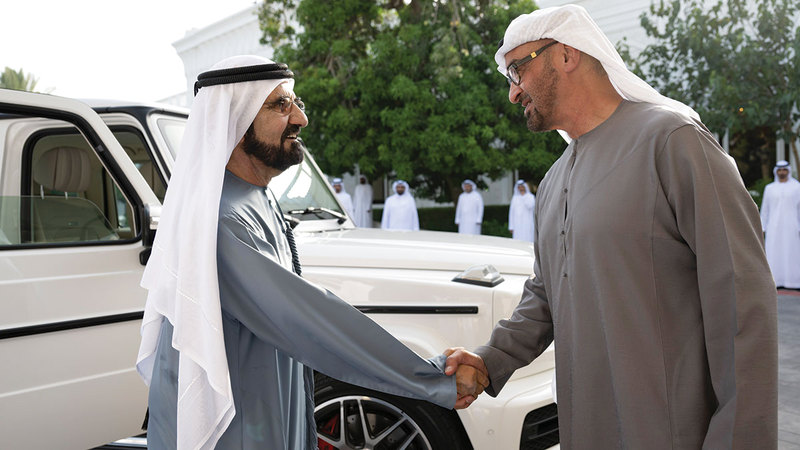 استقبل صاحب السمو الشيخ محمد بن زايد آل نهيان، رئيس الدولة، أمس أخاه صاحب السمو الشيخ محمد بن راشد آل مكتوم، نائب رئيس الدولة رئيس مجلس الوزراء حاكم دبي.
