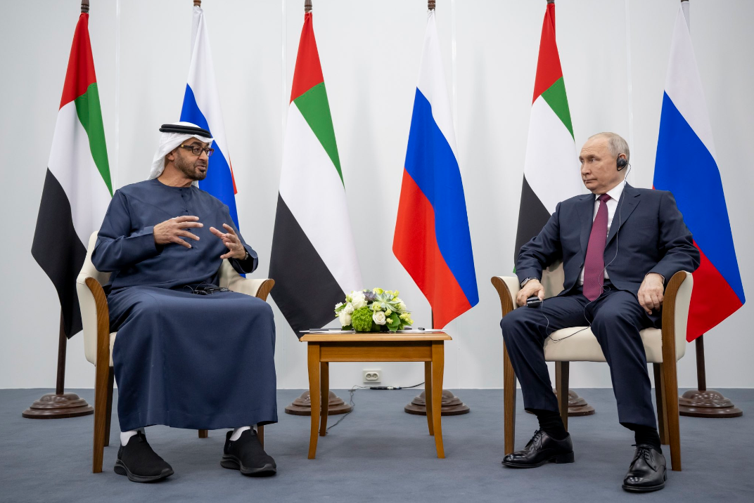التقى صاحب السمو الشيخ محمد بن زايد آل نهيان، رئيس الدولة، الرئيس فلاديمير بوتين في سانت بطرسبرغ بحثا عن مسارات التعاون بين الإمارات وروسيا.