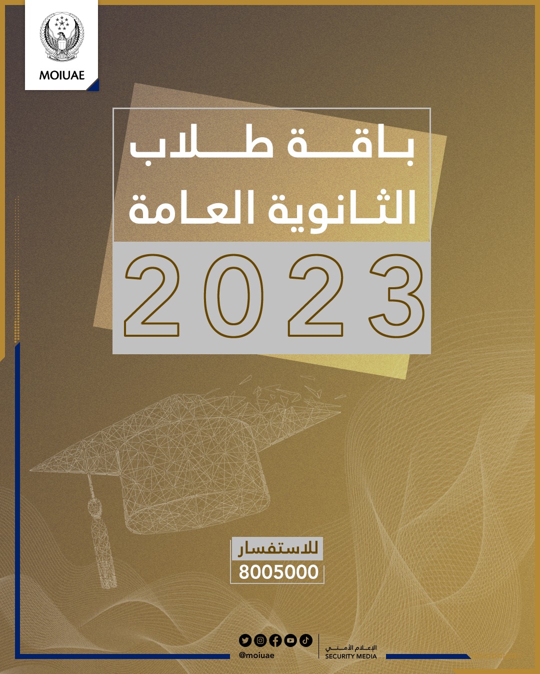 قدمت وزارة الداخلية للسنة السادسة على التوالي، باقة "خدمات طلبة الثانوية العامة" الموجهة إلى خريجي الثانوية العامة للعام الدراسي 2022-2023 وذلك في إطار حرصها الدائم على تعزيز سعادة المتعاملين.