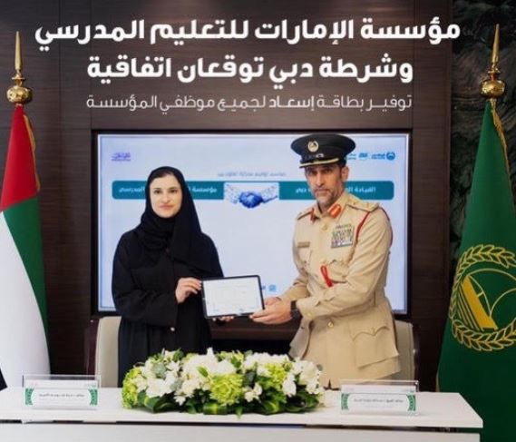 وقعت مؤسسة الإمارات للتعليم المدرسي مع القيادة العامة لشرطة دبي اتفاقية تعاون، لمنح بطاقة إسعاد لموظفي الميدان التربوي، والبالغ عددهم أكثر من 27 ألف موظف.