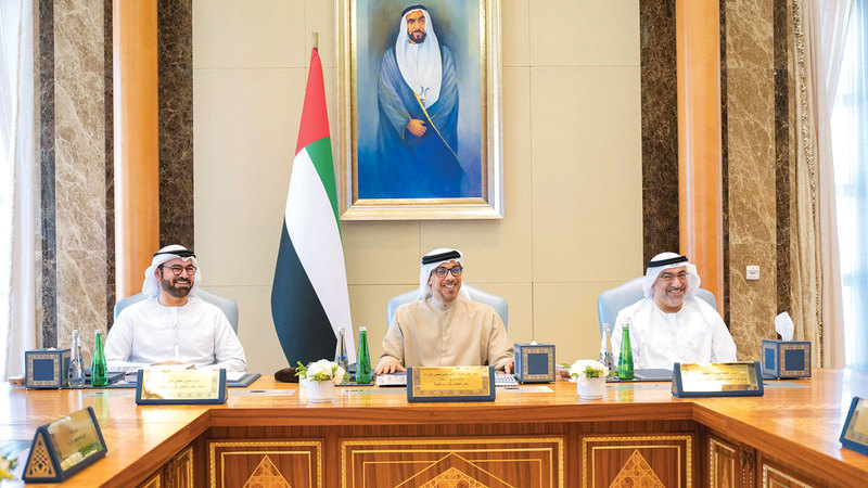 منصور بن زايد خلال ترؤسه «الوزاري للتنمية». وام