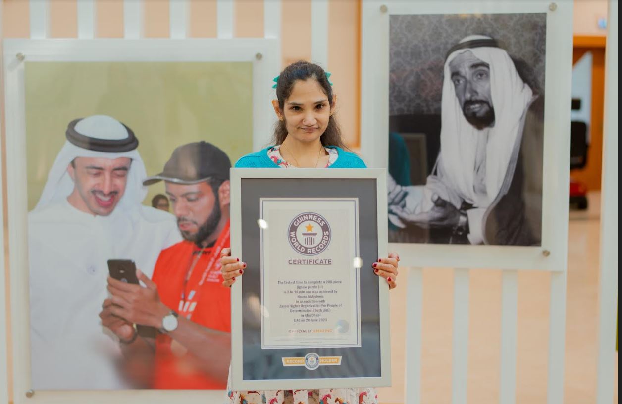 حقّقت المواطنة نورة حسن أحمد العيدروس، من أصحاب الهمم، رقماً قياسياً عالمياً جديداً في تجميع 200 قطعة من أحجية الصور المتقطعة (puzzle)مسجلة بذلك أسرع زمن في تجميع الأحجيات، بإجمالي ساعتين وخمسة عشر دقيقة فقط، لتدخل موسوعة "غينيس" العالمية للأرقام القياسية.