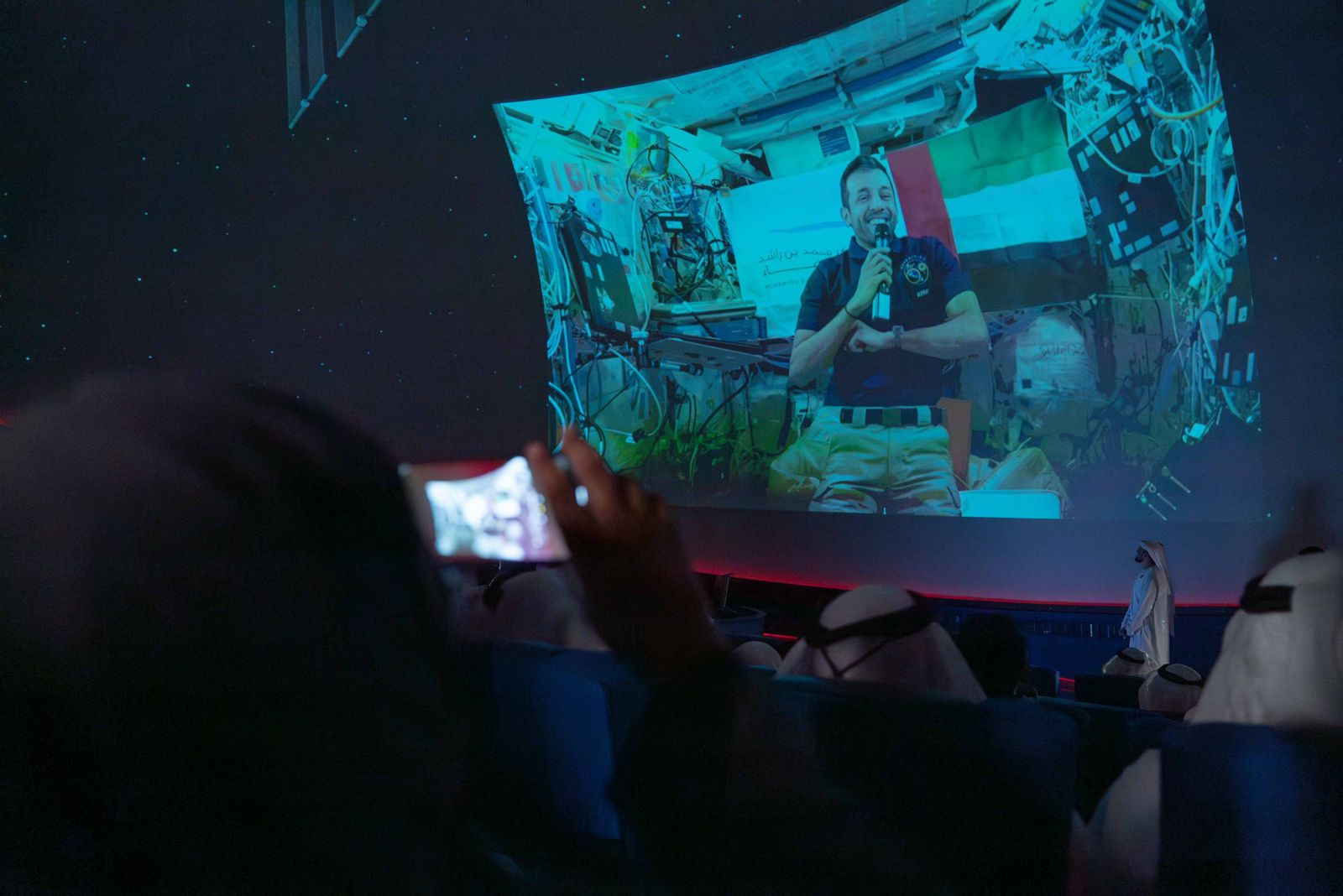 سلطان بن أحمد القاسمي يشهد "لقاء من الفضاء" الثامن مع سلطان النيادي