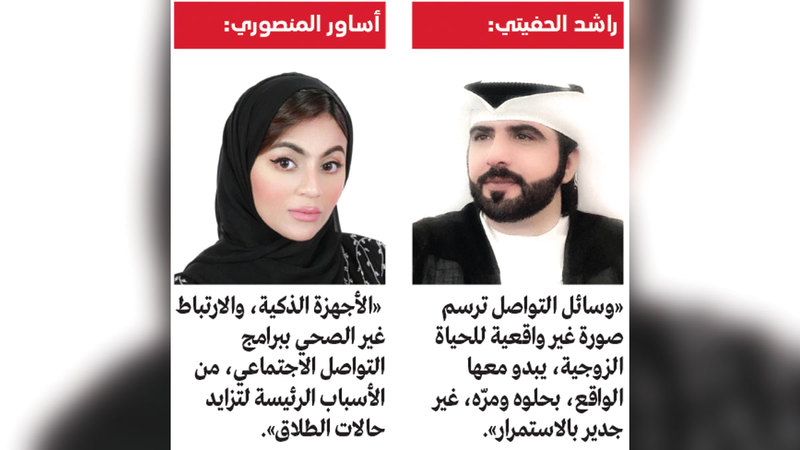 وأضاف أن «وسائل التواصل الاجتماعي وظهور عدد من مشاهير التواصل الاجتماعي الذين يمثلون الحياة الزوجية الزائفة، التي تعتمد على الماديات فقط، ولا تركز على الجوانب النفسية والتربوية، وما تحمله الأسرة من معان حقيقية، أدخلوا كثيراً من الزوجات في دائرة مقارنات أثرت في استقرار الحياة الزوجية، وتسببت في نشوب مشكلات بينهما، قدمت الطلاق كحل أمثل لإنهائها».