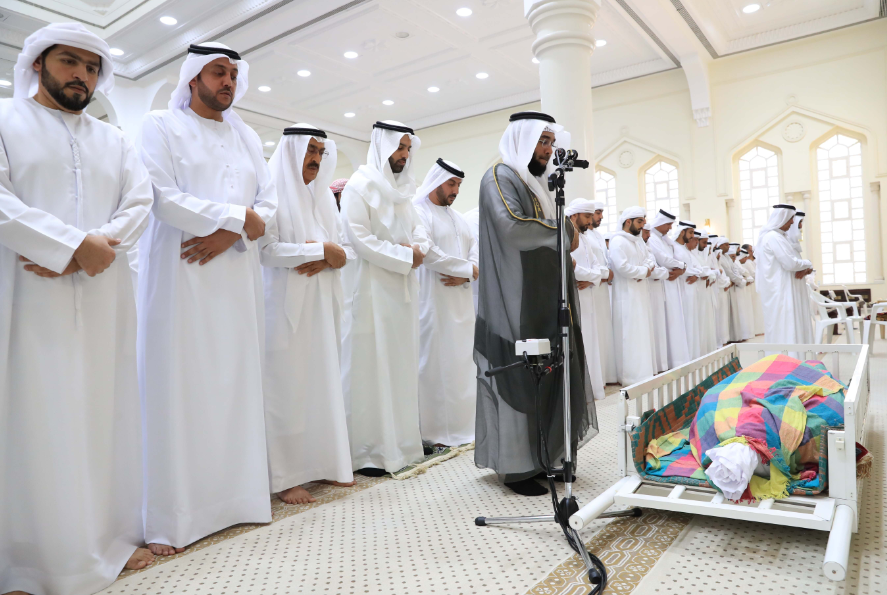 كما أدى صلاة الجنازة في جامع الشيخ زايد برأس الخيمة.. عدد من الشيوخ والمصلين.