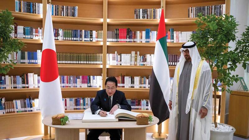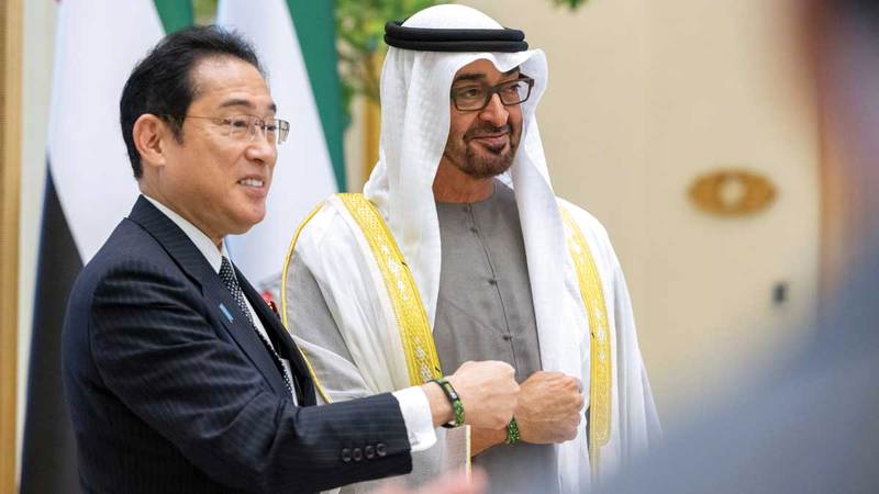 وكان فوميو كيشيدا، رئيس وزراء اليابان الصديقة وصل إلى البلاد، أمس، في زيارة رسمية إلى الدولة.