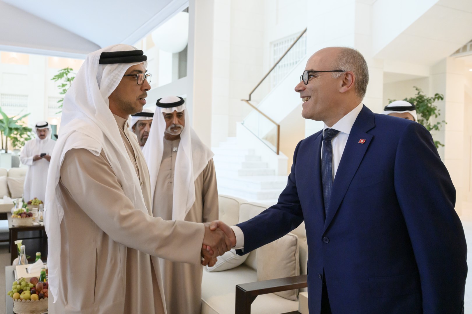 ورحب سموه - خلال اللقاء الذي جرى في قصر الشاطئ في أبوظبي - بمعالي نبيل عمار الذي نقل إلى سموه تحيات فخامة قيس سعيد رئيس الجمهورية التونسية