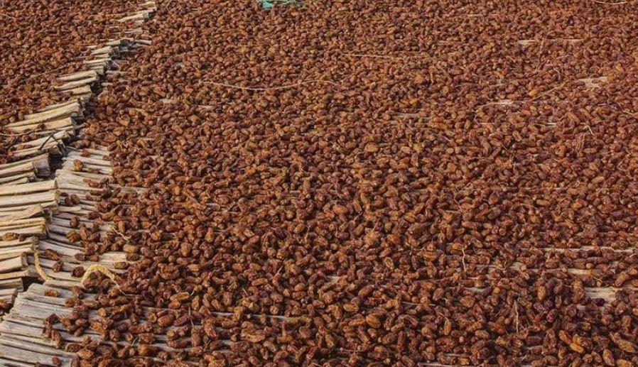 ويأخذ الرطب عادة في هذا الوقت من العام إلى نحو 7 إلى 10 أيام تحت الشمس ليفقد رطوبه و يتحول إلى تمر، و يعد صنف" الخلاص" ملك التمور بين انواع الرطب المختلفة.