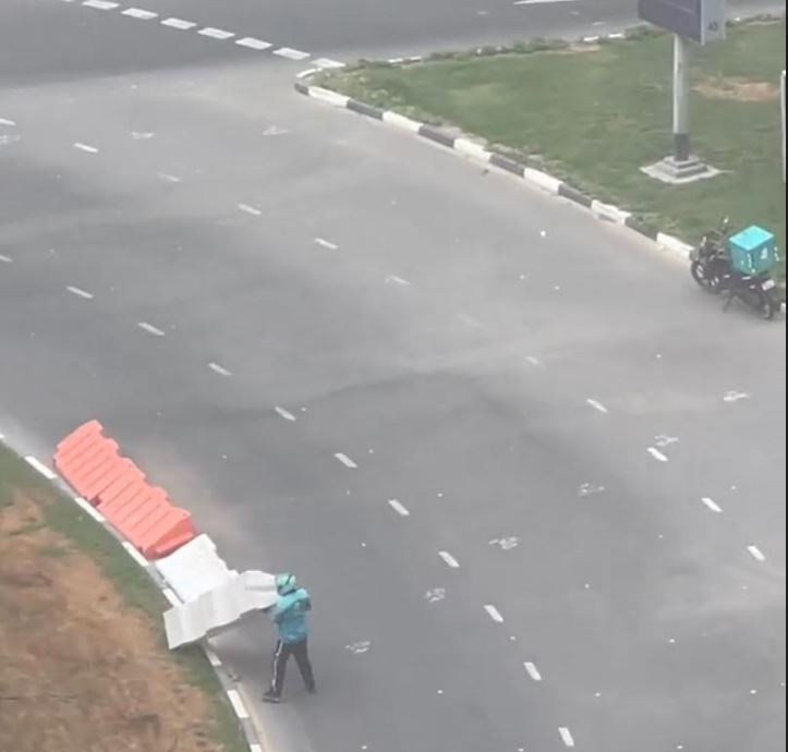 من جانبه قال عامل الديليفري وقاس سروار (باكستاني الجنسية): "عندما كنت أقوم بإزالة الحواجز من الطريق لم أكن أعلم أن هناك من يقوم بتصويري، فقد كنت أقوم بما اعتقدت أنه يجب القيام به، إذ كنت أقود درّاجتي في أحد الدوّرارت وعندما انعطفت إلى اليسار فوجئت بحواجز مرورية متطايرة في نهر الطريق، فتوقفت لأنني في ذلك الوقت لم أراها بوضوح، واعتقدت أن من يأتي من خلفي قد لا ينتبه إليها، ما قد يعرّضه لأي حادث، ولذلك لم أتردد في الوقوف وإزالة هذه الحواجز.