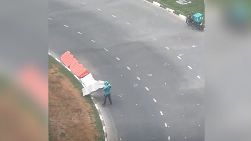 وقال العامل وقاس سروار (باكستاني): «عندما كنت أقوم بإزالة الحواجز من الطريق لم أكن أعلم أن هناك من يقوم بتصويري، فقد كنت أقوم بما أعتقد أنه يجب القيام به، إذ كنت أقود درّاجتي في أحد الدوّارات، وعندما انعطفت إلى اليسار فوجئت بحواجز مرورية متطايرة في نهر الطريق، فتوقفت لأنني في ذلك الوقت لم أرها بوضوح، واعتقدت بأن من سيأتي من خلفي قد لا ينتبه لها أيضاً، ما قد يعرّضه لحادث، ولذلك لم أتردد في الوقوف وإزالة هذه الحواجز».