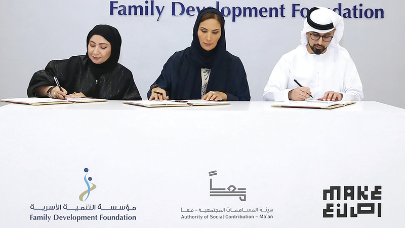 وتخلل الملتقى، الذي أقيم تحت شعار «نحو رفاه اجتماعي مستدام لكبار المواطنين والمقيمين»، توقيع مؤسسة التنمية الأسرية اتفاقية تعاون مع هيئة المساهمات المجتمعية (معاً)، وميك لخدمات الإدارة - اصنع، بهدف تحسين جودة حياة كبار المواطنين والمقيمين في إمارة أبوظبي، وتعزيز اندماجهم في المجتمع من خلال تنمية مهاراتهم، والمشاركة الفاعلة في الأنشطة الاجتماعية، المتمثلة في الحِرف اليدوية لكبار المواطنين، والتي توافر رحلة استكشافية لمهارات واهتمامات جديدة للمشاركين في البرنامج لتمكينهم من التطوير والتشجيع على متابعة المهارات المكتسبة وتنميتها، للوصول لمجتمع مستدام من كبار الصناع. وقّع الاتفاقية مدير عام مؤسسة التنمية الأسرية، مريم محمد الرميثي، ومدير عام هيئة المساهمات المجتمعية «معاً»، سلامة عجلان العميمي، ومدير عام شركة ميك لخدمات الإدارة - اصنع، طلال الأنصاري.