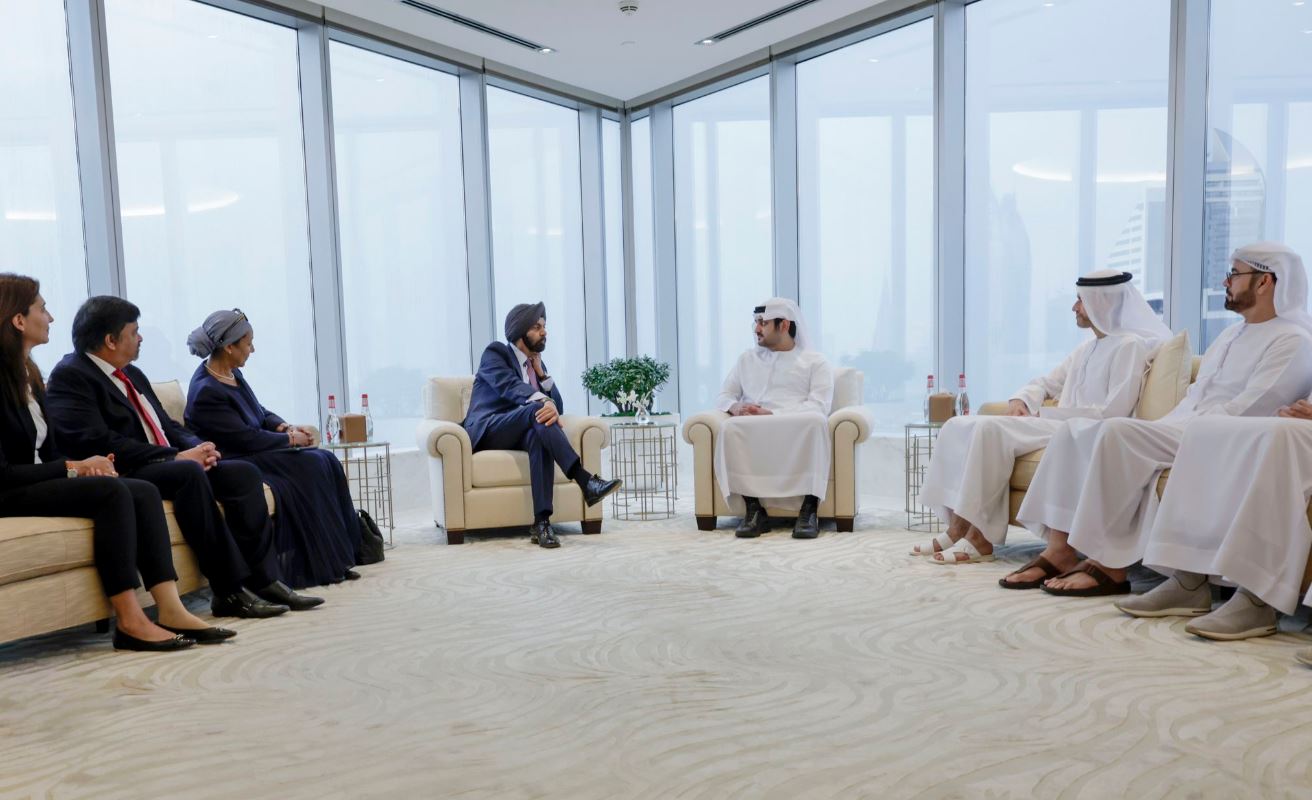 وأكد سمو الشيخ مكتوم بن محمد بن راشد آل مكتوم خلال اللقاء أهمية تعزيز الشراكة لتحقيق الأجندة العالمية لمواجهة التحديات، مشيراً سموه إلى دور مجموعة البنك الدولي الداعم لمؤتمر الأطراف "COP28" في مجالات الغذاء والمياه وتمويل المناخ، كذلك دعم توجهات دولة الإمارات نحو تعزيز مكانتها كمركز عالمي للابتكار في التقنيات المناخية، وسعيها للعب دور مؤثر في مواجهة تأثيرات التغير المناخي على الصعيدين الإقليمي والعالمي.