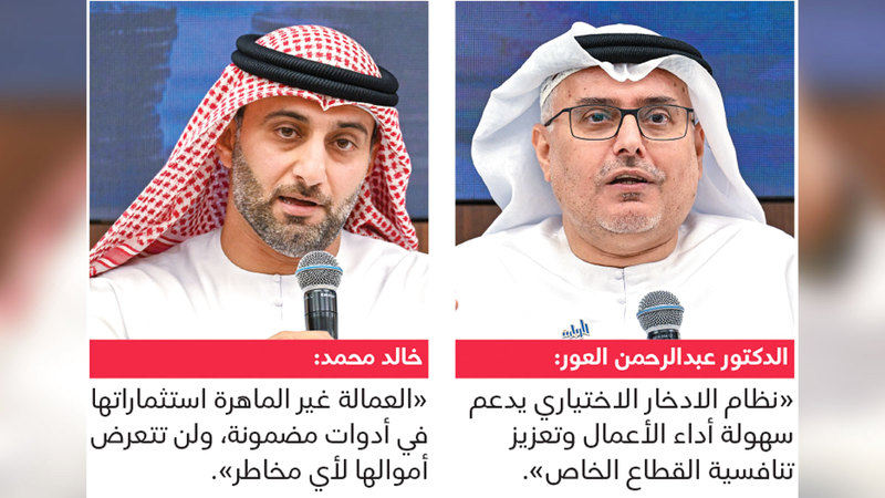 وبيّن أن العمالة غير الماهرة ستكون استثماراتها في أدوات مضمونة، ولن تتعرض أموالها لأي مخاطر، فيما ستتاح للعمالة الماهرة التي تتقاضى أكثر من 4000 درهم خيارات متعددة في الاستثمار (قليلة المخاطر مع ربح أقل، ومتوسطة المخاطر مع ربح متوسط، وعالية المخاطر مع ربح مرتفع).