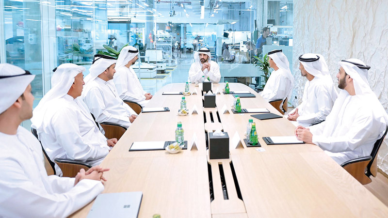 حمدان بن محمد خلال ترؤسه اجتماع اللجنة العليا لتكنولوجيا المستقبل والاقتصاد الرقمي. من المصدر