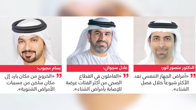 وقال أخصائي الصحة المهنية، الدكتور منصور أنور، إن أمراض الجهاز التنفسي تعد الأكثر شيوعاً خلال فصل الشتاء، وتشمل أعراضها الرشح والتهابات الصدر والحلق وأمراض الأذن وحساسية الصدر.