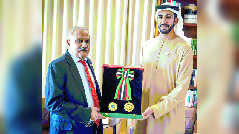 وقلّد الشيخ شخبوط بن نهيان آل نهيان، وزير دولة، السفير، الوسام، معرباً عن تمنياته له التوفيق والنجاح في عمله، مُثنياً على دوره في تعزيز العلاقات المتميزة بين دولة الإمارات وجمهورية جنوب إفريقيا في المجالات كافة.