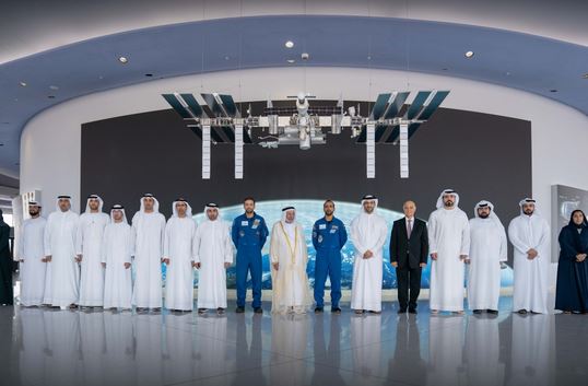 وتناول اللقاء المهمة الناجحة التي أنجزها الفريق في محطة الفضاء الدولية مؤخراً والتي رفعت اسم دولة الإمارات العربية المتحدة عالياً، والتطور الكبير في برامج علوم الفضاء والفلك التي يجسدها الاهتمام الواسع في الدولة بالتعليم والتعاون الدولي والبحث العلمي، مما يسهم في تحقيق المزيد من الانجازات العلمية في كافة المجالات.