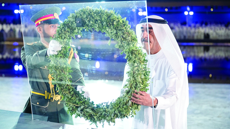 حاكم أم القيوين والشيوخ يشهدون مراسم يوم الشهيد في واحة الكرامة