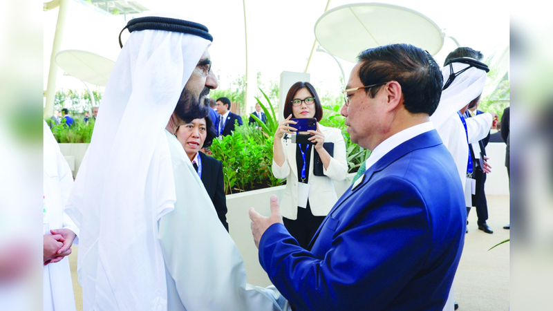 فقد التقى صاحب السمو الشيخ محمد بن راشد آل مكتوم، في ساحة الوصل، كلاً على حدة: صاحب الجلالة الملك حمد بن عيسى آل خليفة، ملك مملكة البحرين، وصاحب السمو الشيخ تميم بن حمد آل ثاني، أمير دولة قطر، والرئيس المصري عبدالفتاح السيسي، ورئيس وزراء جمهورية الهند ناريندرا مودي، ورئيس الحكومة اللبنانية نجيب ميقاتي، كما التقى سموه، المدير العام لصندوق النقد الدولي كريستينا جورجيفا، إضافة إلى عدد من رؤساء الدول والحكومات المشاركين في المؤتمر الأهم عالمياً في مجال العمل المناخي.